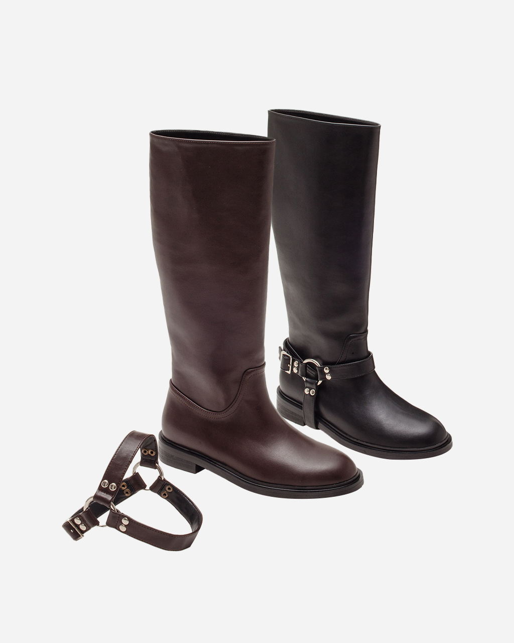 153,000원+ CART - 몬타나 라이더 스트랩 플랫 롱 부츠ㅣ2-WAY