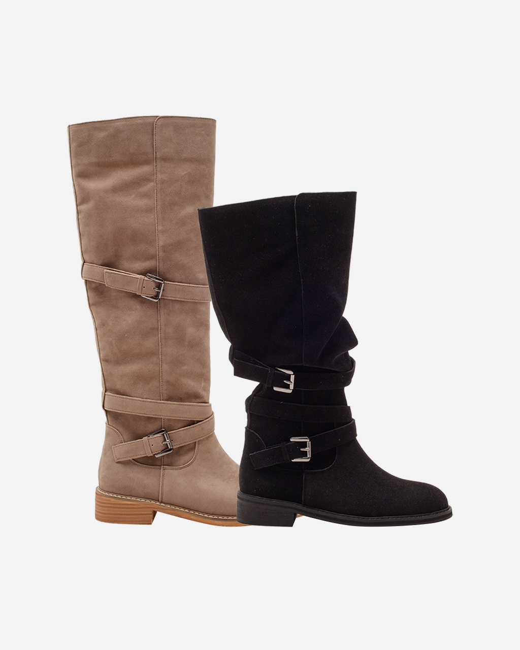 - Westie 웨스티 스웨이드 X-버클 스트랩 슬라우치 니하이/롱 부츠 I 2-WAY