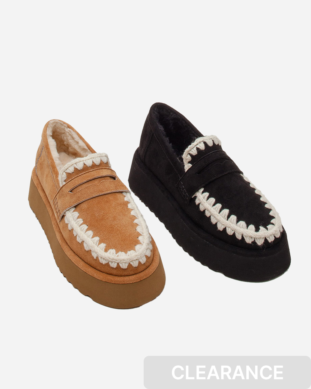 - [클리어런스] Macy 마시 스웨이드 스티치 플랫폼 퍼 로퍼