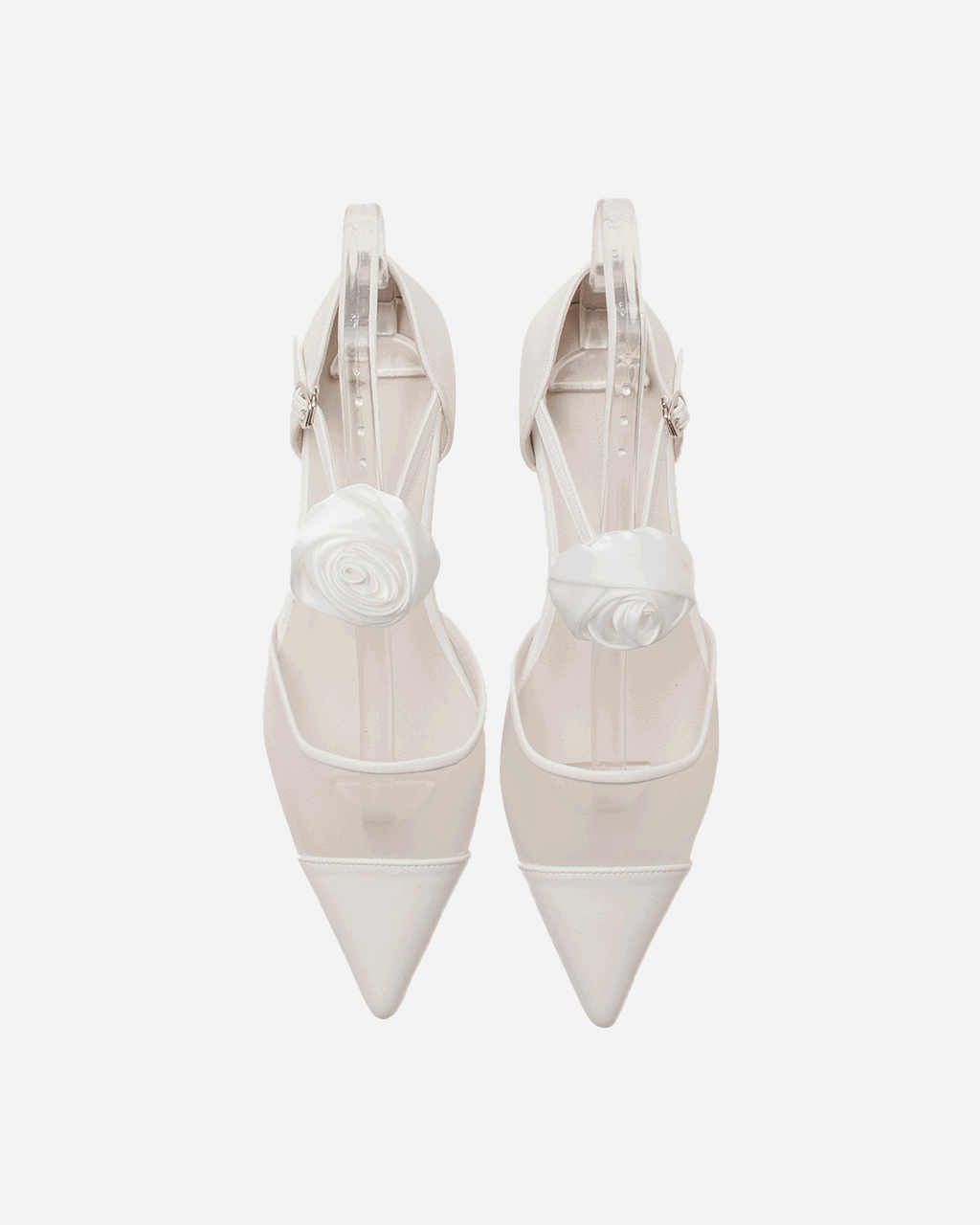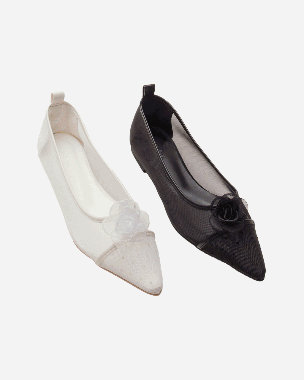 - [WEDDING] Rosie 로지 포인티드 토 메쉬 코사지 메리제인 플랫 2-WAY 웨딩 슈즈
