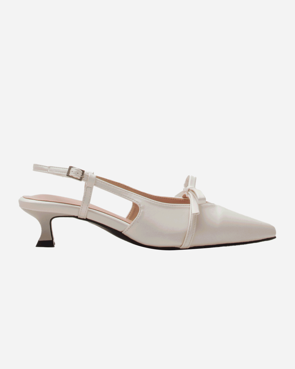- [WEDDING] Dahlia 달리아 포인티드 토 리본 슬링백 미드힐 펌프스 웨딩 슈즈