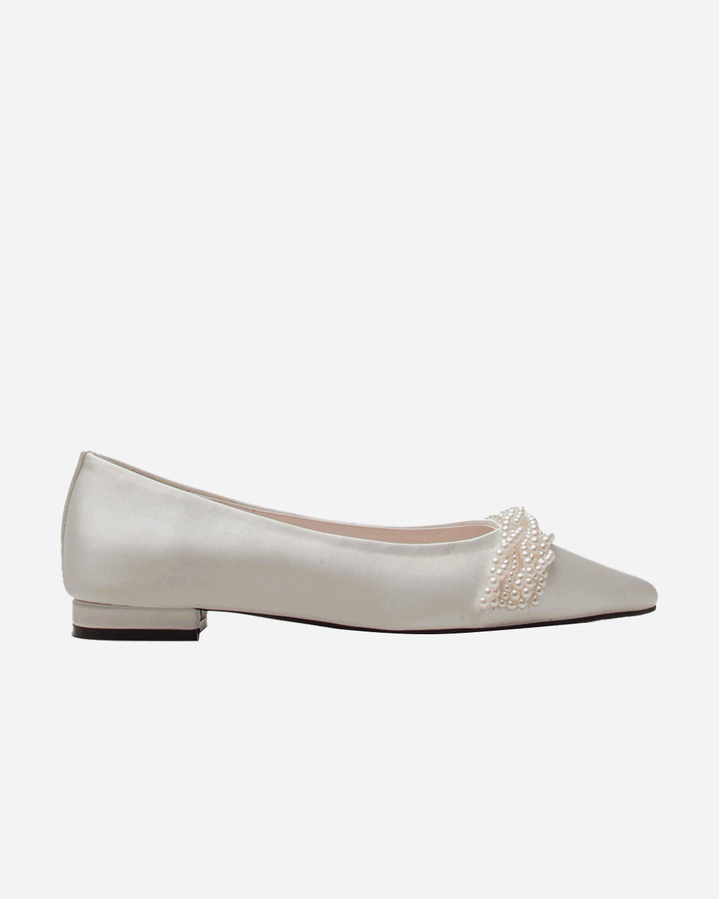 - [WEDDING] Cinerea 시네리아 포인티드 토 쉬폰 플랫 웨딩 슈즈