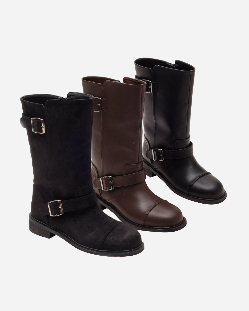 - [퍼 안감추가] Wild 와일드 버클 롱 부츠